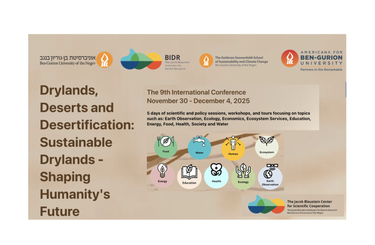 Université Ben-Gourion du Néguev (Israël) : 9ème Conférence « terres arides, déserts et désertification » 30 nov.-4 déc. 2025 avec plus de 1000 participants et 160 intervenants de 30 pays
